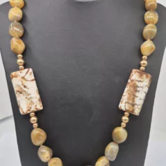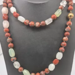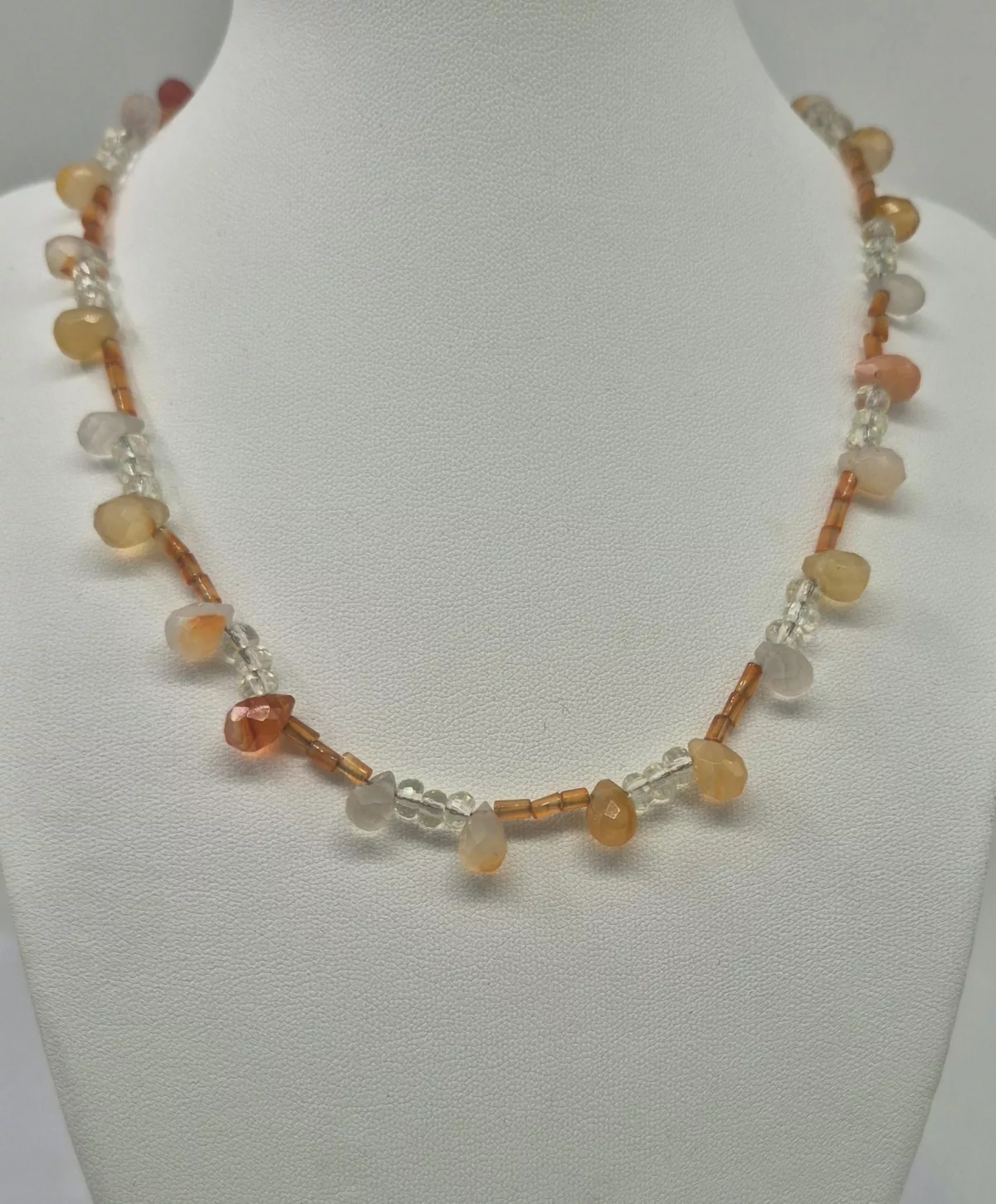 Carnelian faceted drop gems, Crystal spacers, Carnelian stick gems, 41cm long, with gold colour lobster clasp, designer piece